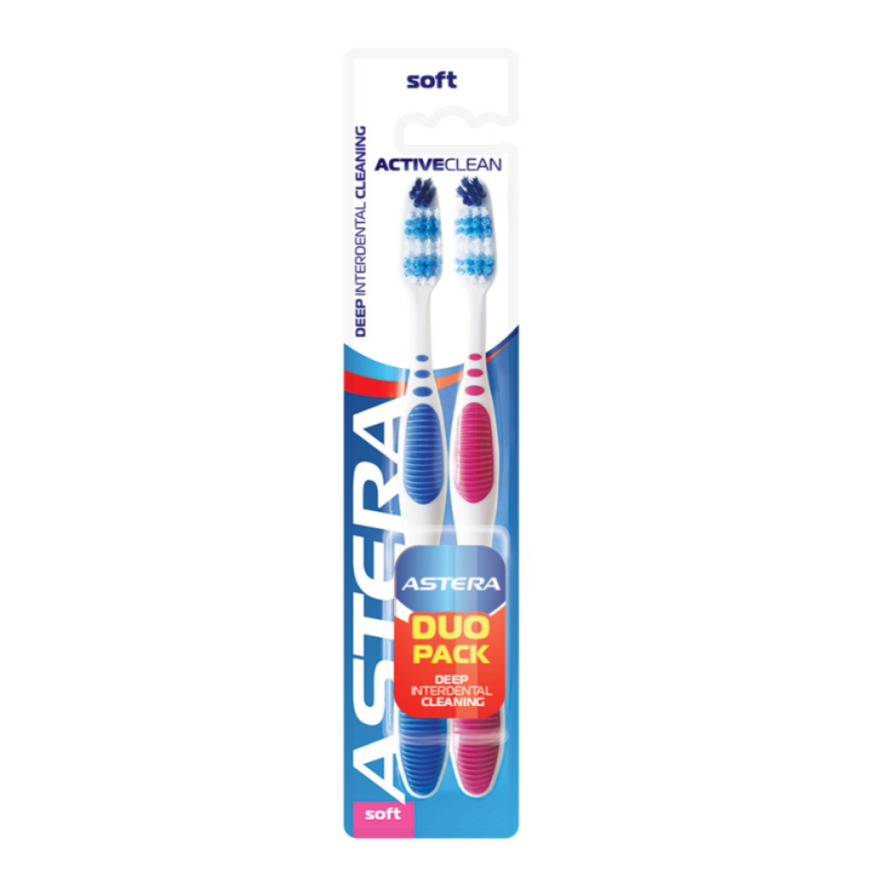 أستيرا أكتيف كلين فرشاة أسنان بشعيرات ناعمة(ألوان عشوائية)-2 قطعة