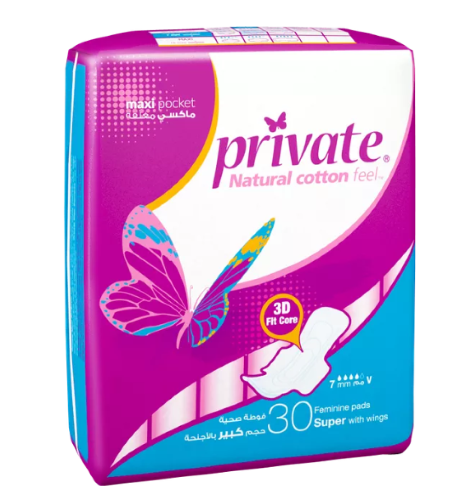 برايفت ماكسي فوط نسائية صحية حجم سوبر بعدد 30 فوطة