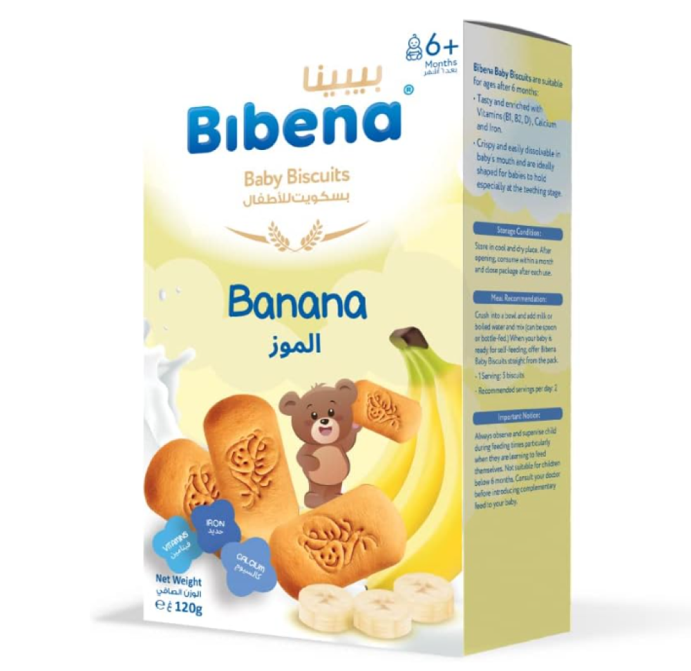 بسكويت الموز للاطفال من بيبينا للاطفال بعمر 6 اشهر، 120 غرام