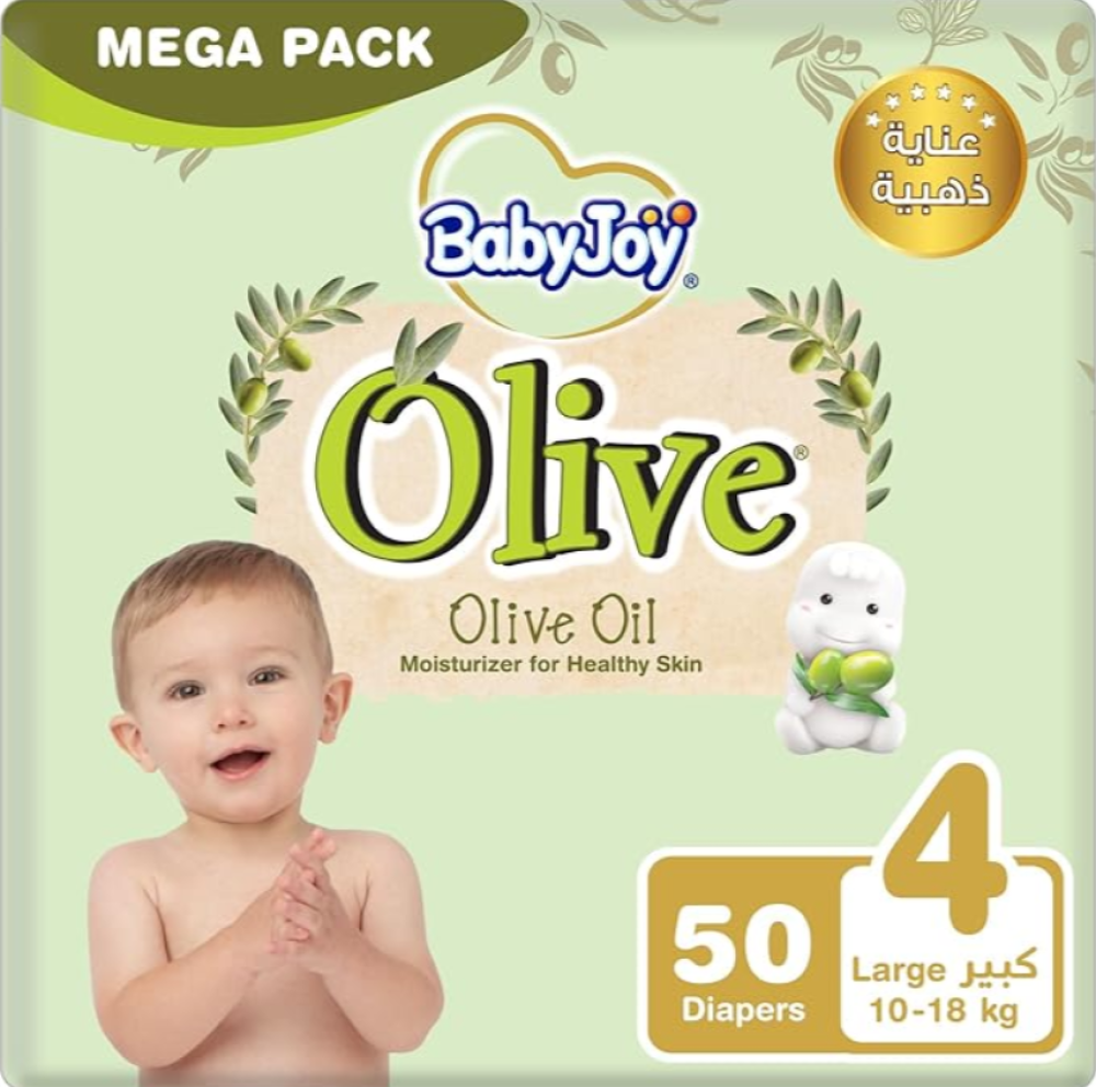 بيبي جوي البشرة الصحية بزيت الزيتون مقاس 4 – 10-18 كغ كيس 50 حفاض