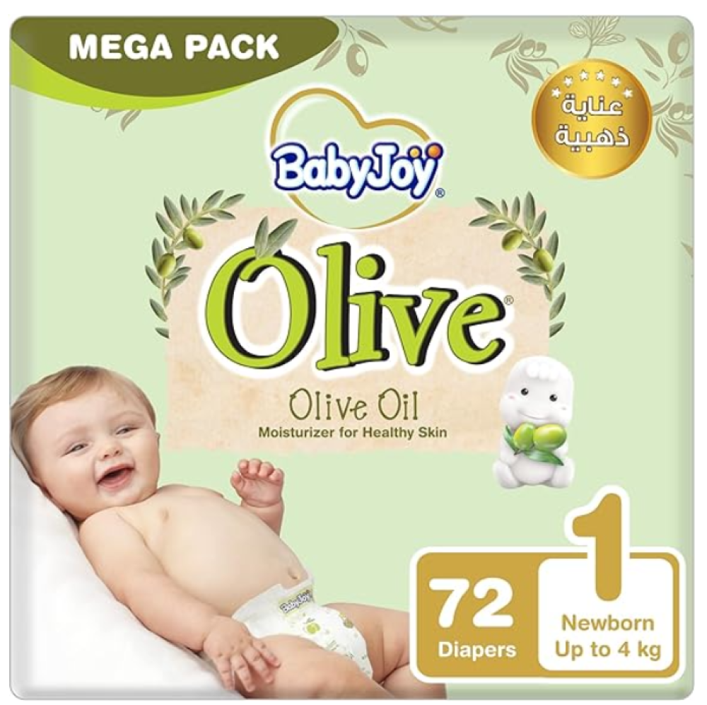 بيبي جوي البشرة الصحية بزيت الزيتون مقاس 1 المولود الجديد 0-4 كغ كيس 72 حفاض