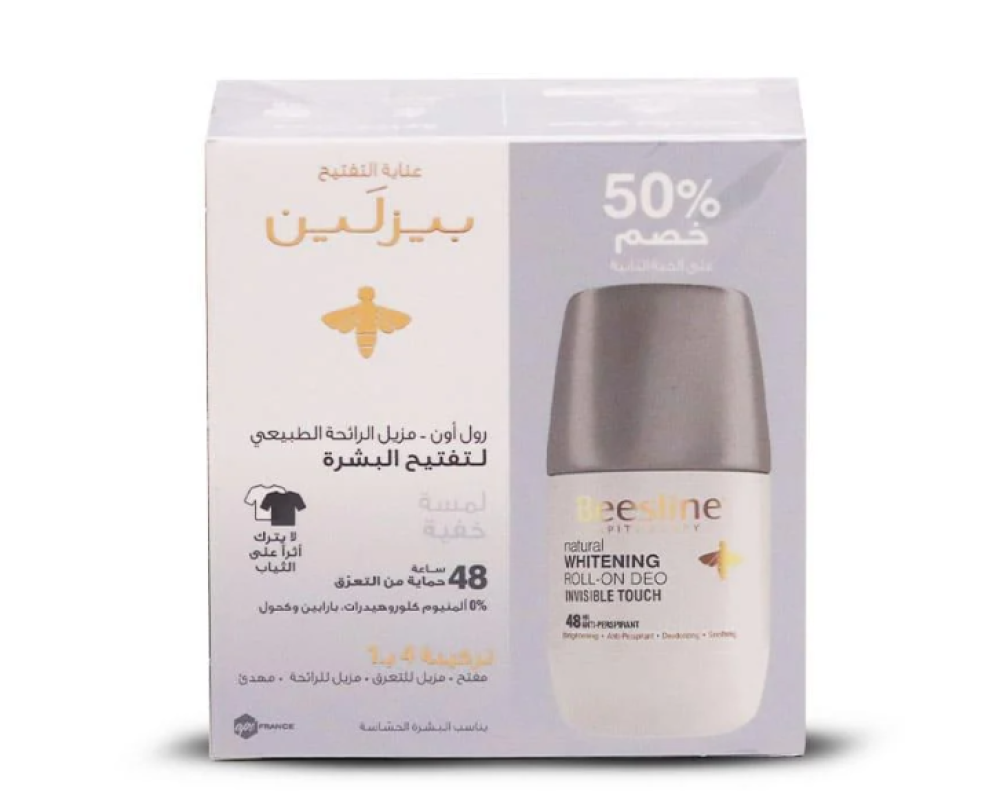 بيزلين رول اون مزيل الرائحة الطبيعي لتفتيح البشرة لمسة خفية -50 مل 1+1