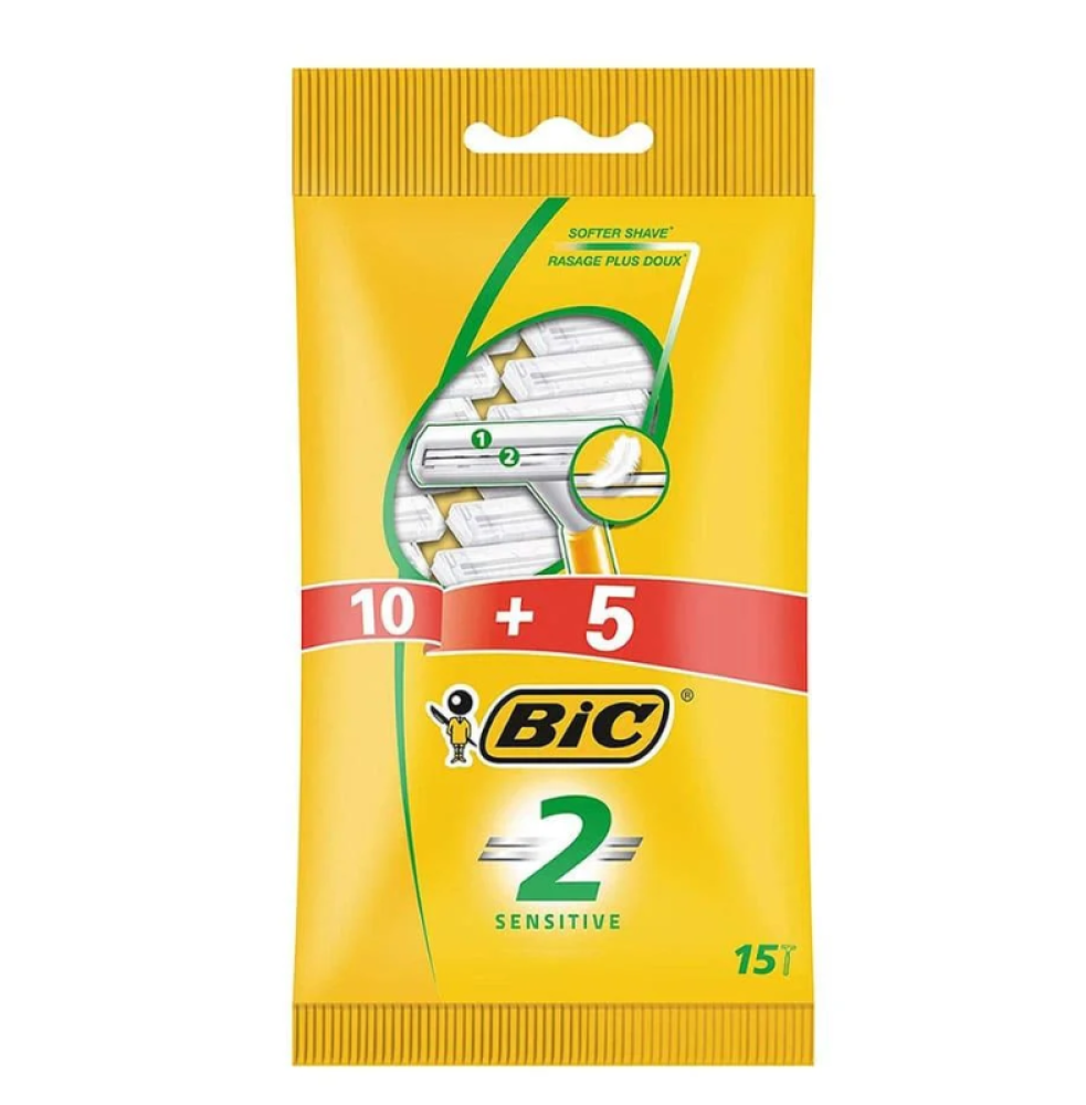 بيك ماكينة حلاقة للبشرة الحساسة شفرتين 15 شفرات حلاقة تستخدم للحصول على حلاقة ناعمة ومريحة.