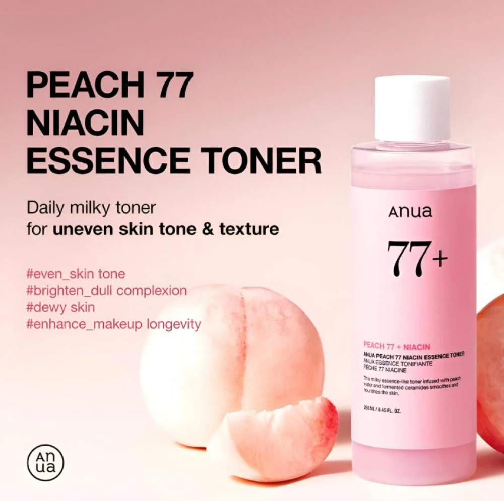 تونر خفيف يحتوي على 77٪ من خلاصة فاكهة الخوخ، يساعد على ترطيب وتنعيم البشرة مع دعم مظهرها الصحي وتوحيد لونها، مناسب لجميع أنواع البشرة.