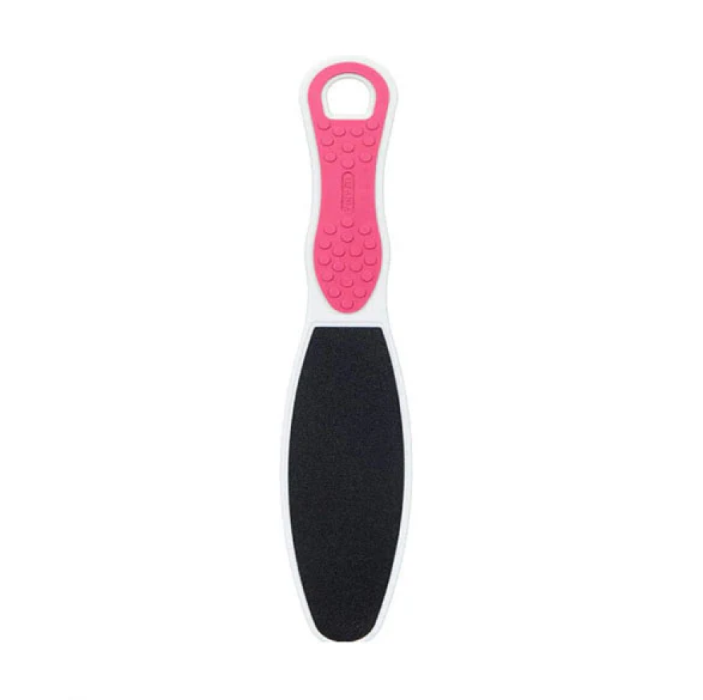 استخدمي المحك من الاتجاه الناعم لصنفرة القدمين، ومن الاتجاه الخشن للتخلص من الطبقات المتراكمة.