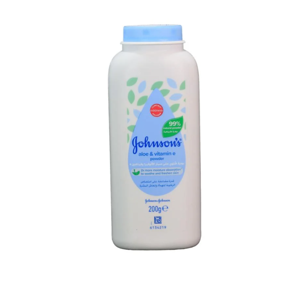 جونسون بودرة أطفال طبيعية تحتوي علي الألوفيرا و فيتامين ه 200 جم