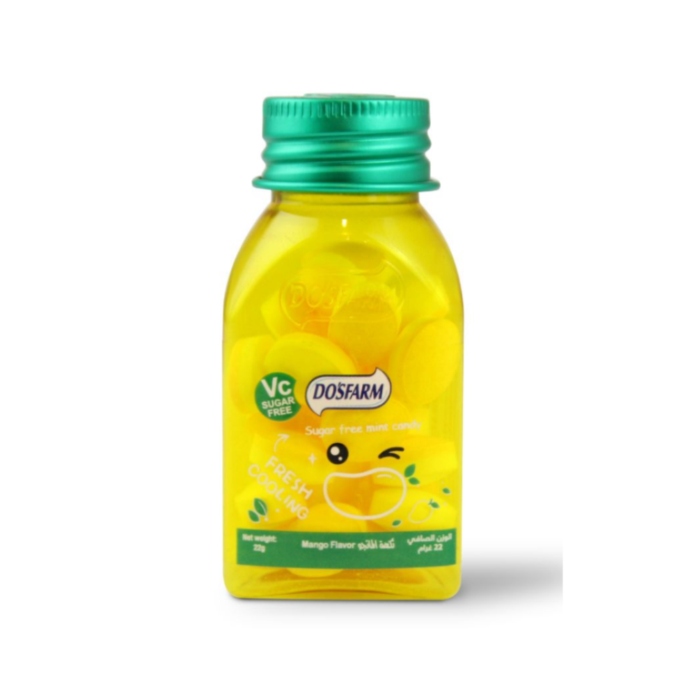 دوسفارم حلوى منعشة مع فيتامين C بنكهة المانجو خالية من السكر – 22 جم
