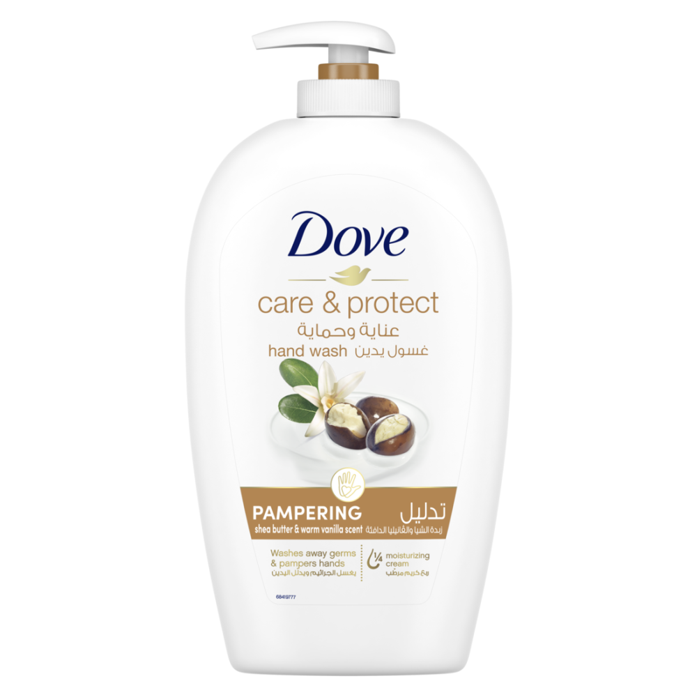 دوف سائل يدين مغذي بزبدة الشيا، يمنح اليدين نعومة فائقة ورائحة دافئة، بتركيبة لطيفة تنظف بفعالية وتحافظ على ترطيب البشرة.