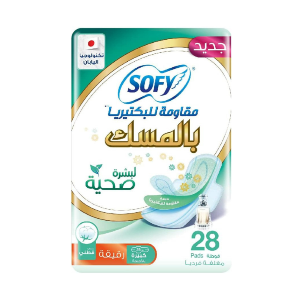 سوفي فوط نسائية مقاومة للبكتيريا بالمسك رقيقة كبيرة بالأجنحة- 28 فوطة
