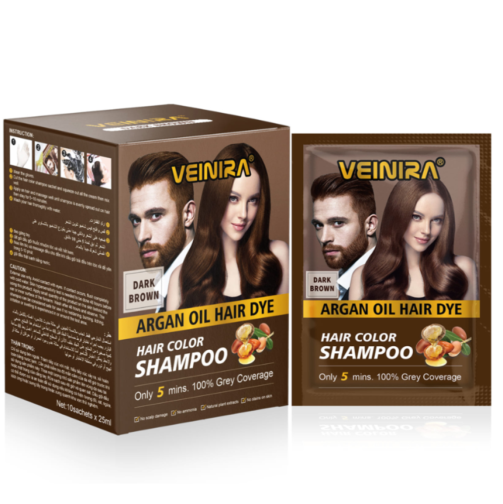شامبو صبغة الشعر بني غامق طبيعي بدون أمونيا بزيت الأرجان والصبار 3 في 1 من فينيرا ( 25X10 مل )