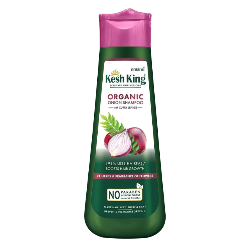 شامبو كيش كينغ قوة البصل العضوي وأوراق الكاري، الموثوق بها في الأيورفيدا، لتقليل تساقط الشعر وتعزيز نمو الشعر.