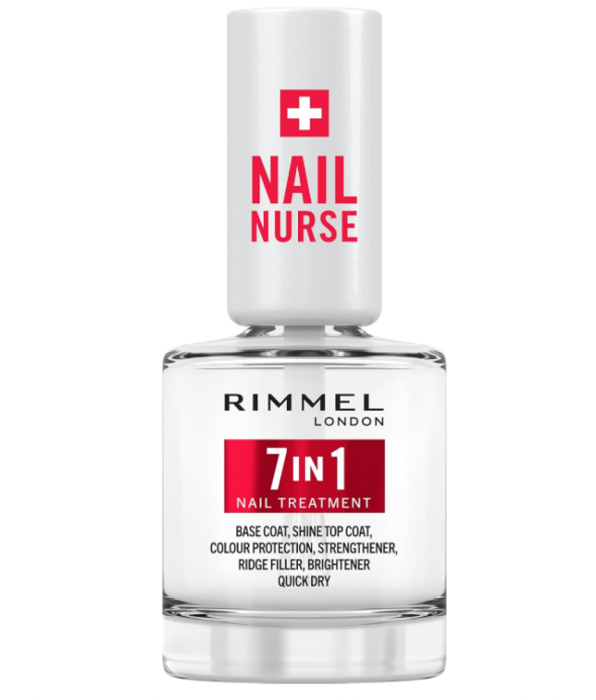 طلاء للعناية بالأظافر 7 في 1 متعدد الفوائد من ريميل لندن، طلاء أساس، طلاء علوي، طلاء تجفيف سريع، طلاء لمسة نهائية ناعمة، طلاء مقوي، طلاء يثبت اللون ويملأ الفراغات، تركيبة نباتية، 12 مل