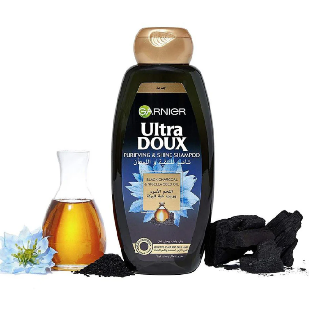 غارنييه شامبو الترا دو لتنقية ولمعان الشعر بخلاصة الفحم الأسود وزيت حبة البركة