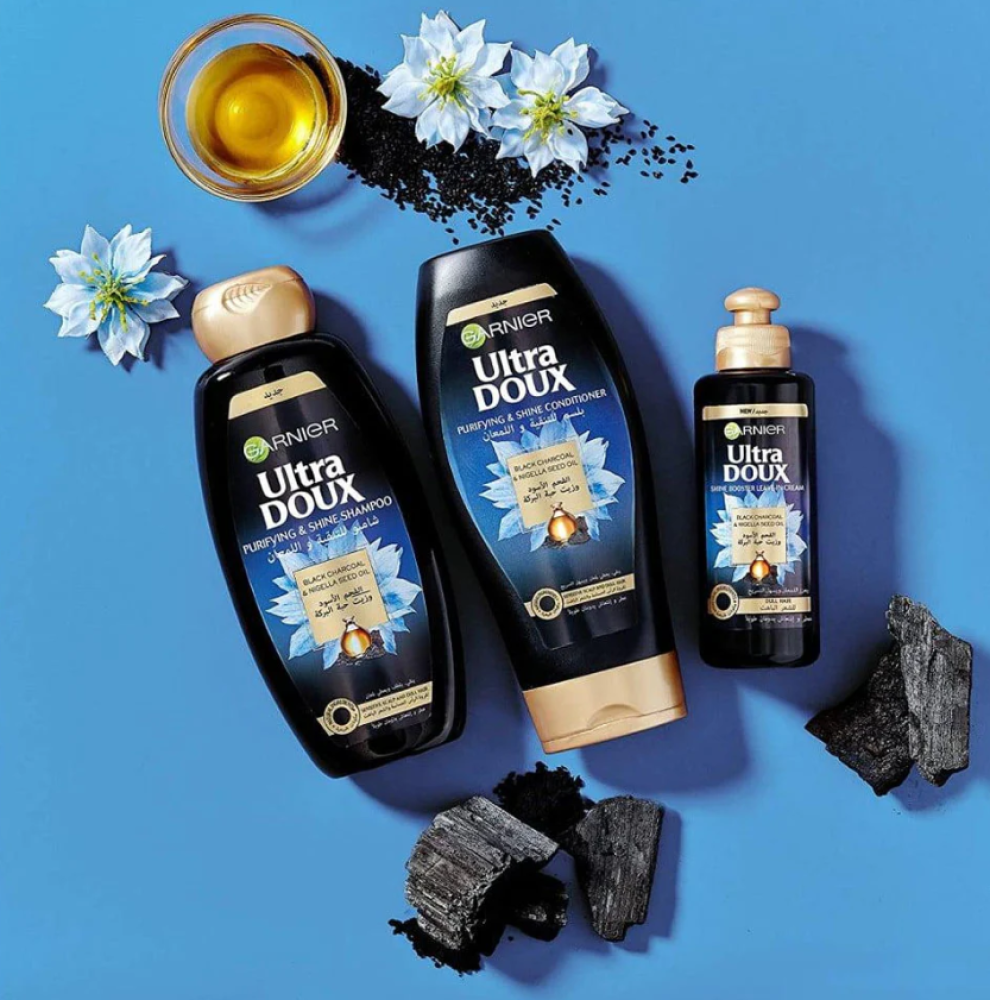 اعتني بشعرك مع شامبو الترا دو للتنقية واللمعان بالفحم الأسود وزيت حبة البركة لفروة الرأس الحساسة والشعر الباهت.