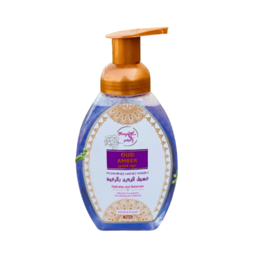 صابون سائل اليدين الرغوي بالعود والعنبر يزيل ألأوساخ والرائحة والشوائب بينما تعزز المكونات الطبيعية والمرطبة لبشرة صحية وناعمة .