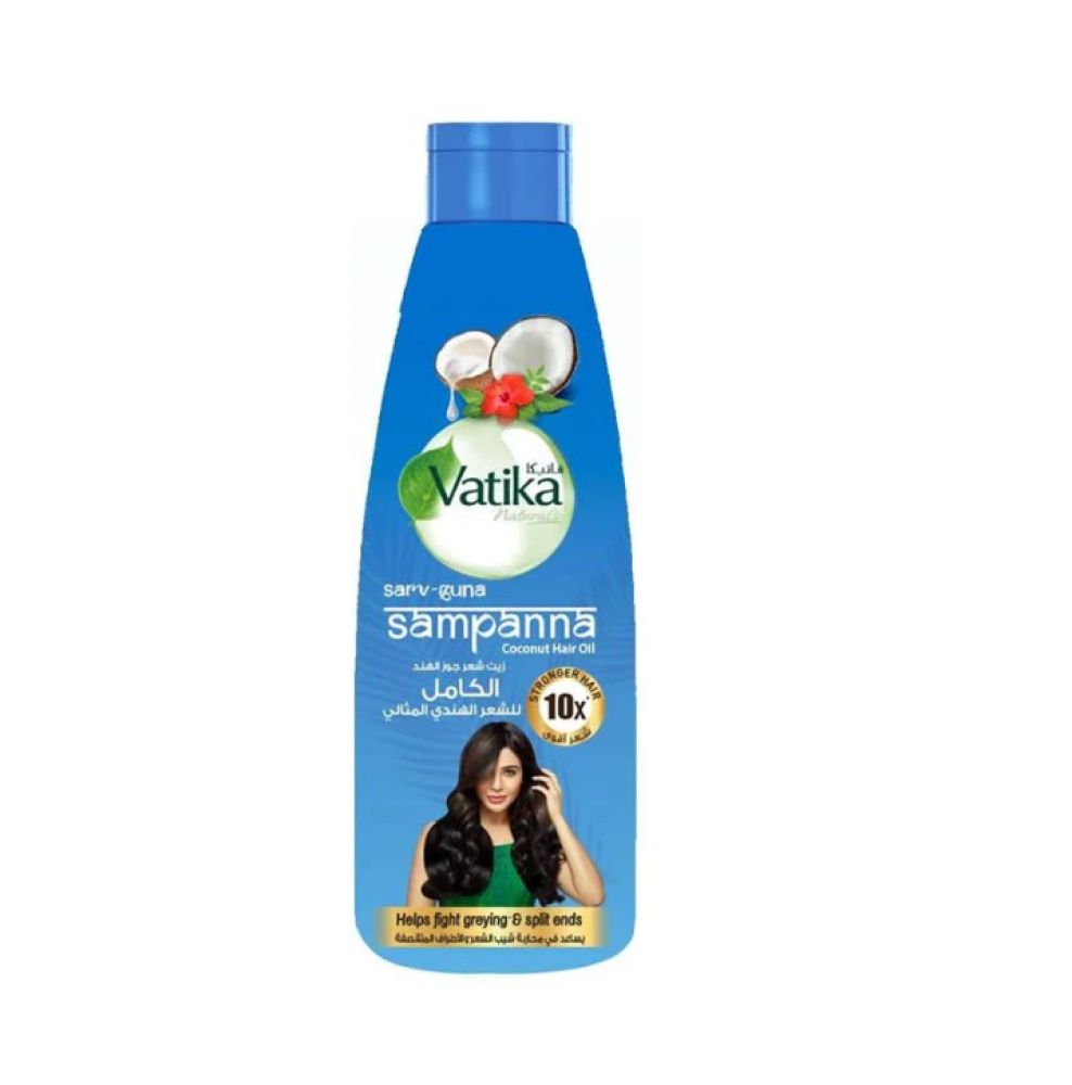احصلي على تغذية مكثفة لشعرك مع زيت فاتيكا سامبانا بجوز الهند الكامل، الذي يمنحك ترطيبًا عميقًا ويعزز صحة الشعر، مما يجعله أكثر قوة ولمعانًا.