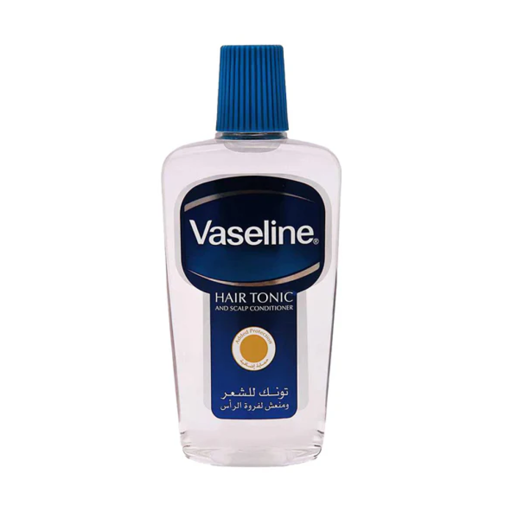 يمكنك استخدام الفازلين من خلال وضع  القليل من تونك الشعر على يديك وافركهما معًا ثم دلك به فروة رأسكِ بقوة. يمكنك بعد ذلك تصفيف شعرك.