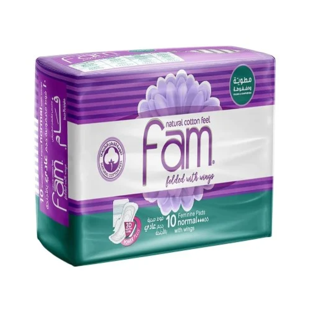 فام فوط صحية سوبر – مضغوطة ومطوية , عادى بالاجنحة – 10 قطعة