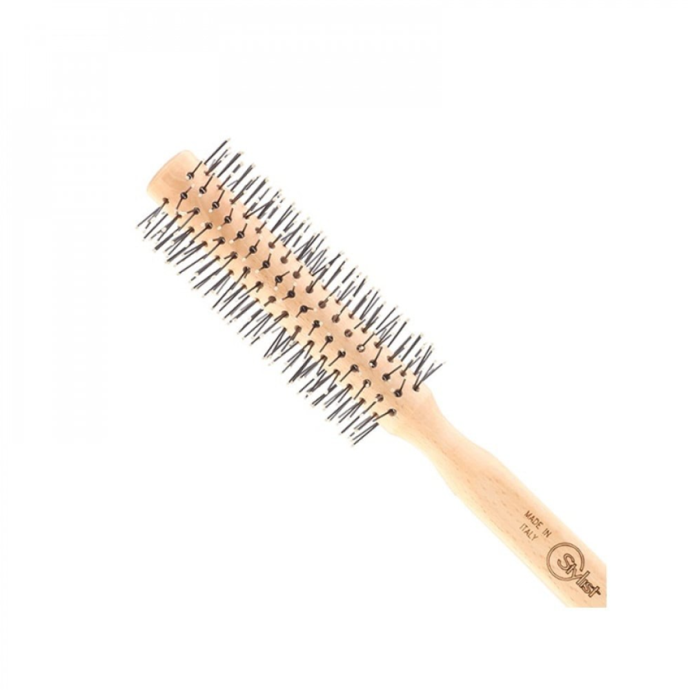 فرشاة شعر استشوار ماركة ستايلست المقاومة للحرارة مصنوعة في ايطاليا مصنوعة بجودة عالية لاستخدام المحترفين ومضادة للكهرباء الساكنة بفضل المقبض الخشبي بالكامل عدد الصفوف 8 أقصى درجة حرارة: 140 درجة مئوية