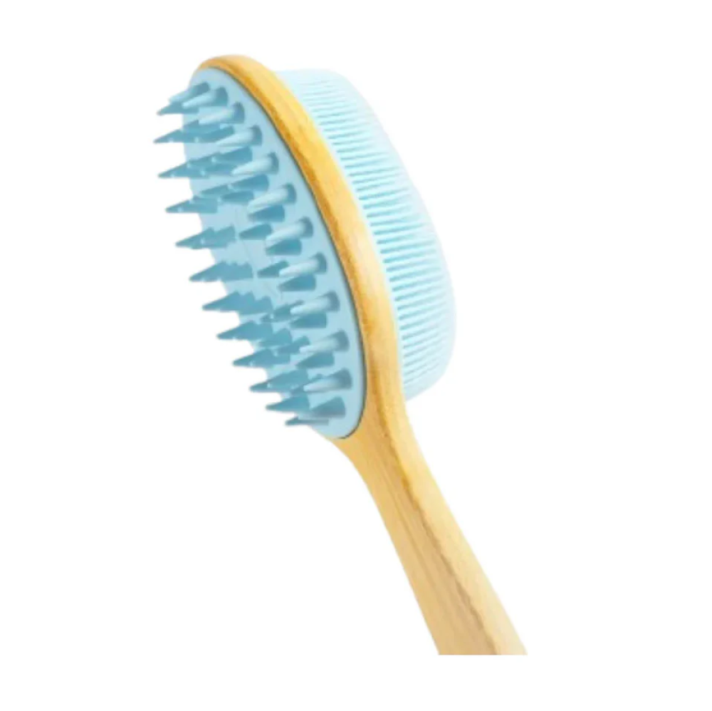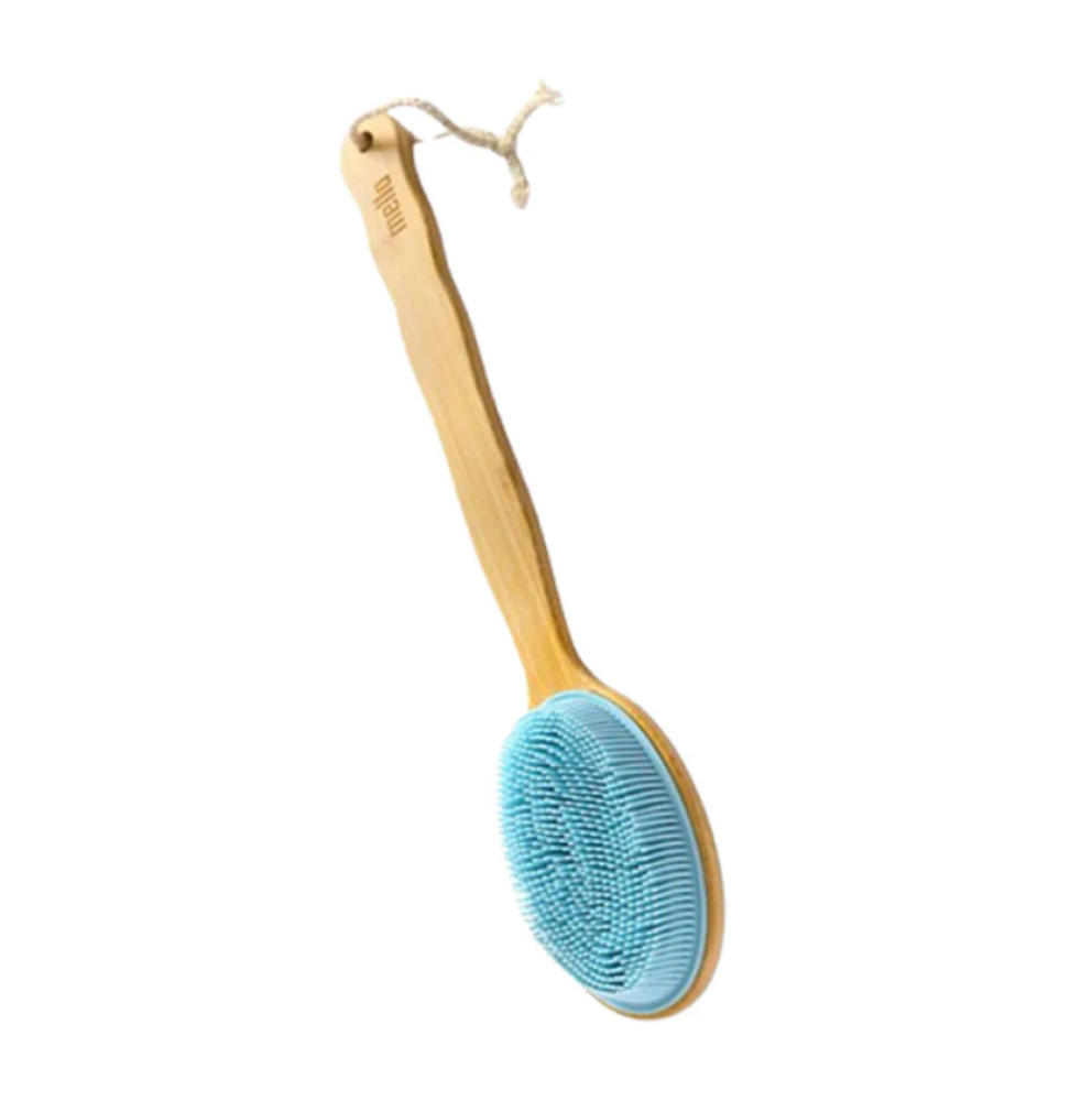 اجمعي بين فخامة الخشب الطبيعي ومرونة السيلكون الحديث مع فرشاة ميلا الزرقاء. تصميم مبتكر بمقبض طويل يسمح لكِ بالوصول لكل زاوية في جسمك بسهولة، ليتحول الاستحمام اليومي إلى جلسة سبا منزلية متكاملة.