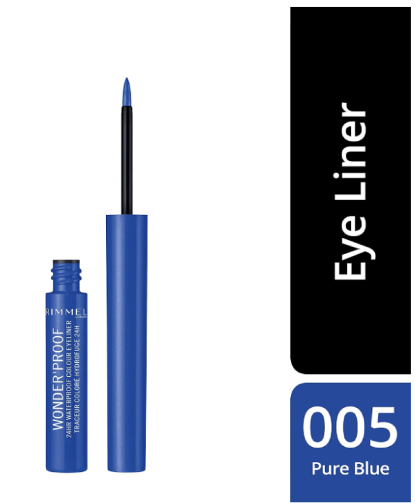 قلم تحديد العيون بلون مقاوم للماء وندربروف يدوم لمدة 24 ساعة من ريميل لندن، 05 ازرق بيور، 1.4 مل