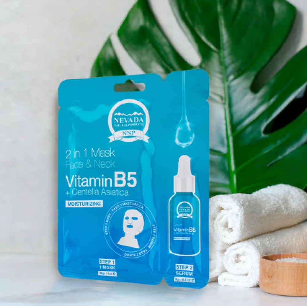احصلي على عناية مزدوجة مع قناع نيفادا 2 في 1 للوجه والرقبة، بتركيبة فعالة من فيتامين B5 وسنتيلا أسياتيكا. يغذي البشرة بعمق، يجدد الخلايا، يعزز إنتاج الكولاجين – يوحد لون البشرة  ويحسن ملمسها ليمنحك إشراقة صحية وشابة.