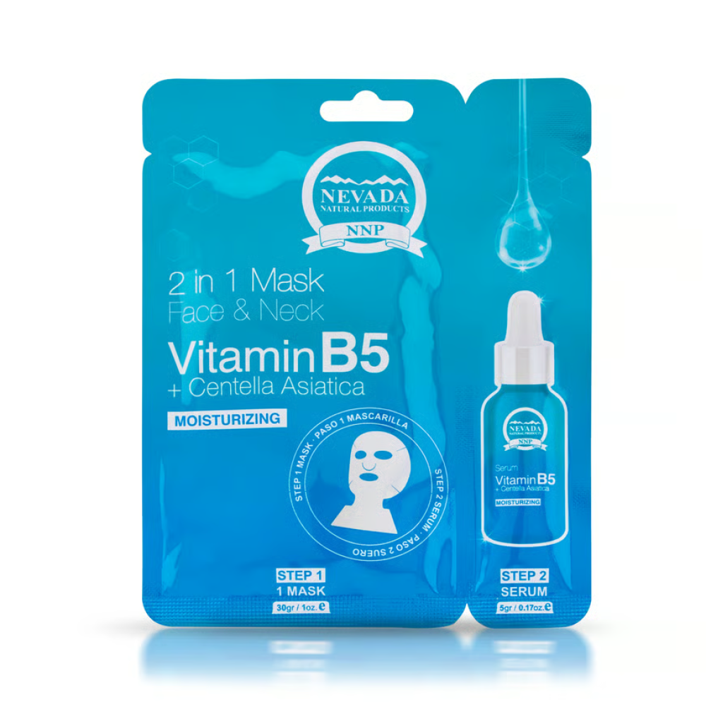 قناع الوجه والرقبة بفيتامين B5 وسنتيلا أسياتيكا من نيفادا – ترطيب وتجديد فائق للبشرة (5 قطع)