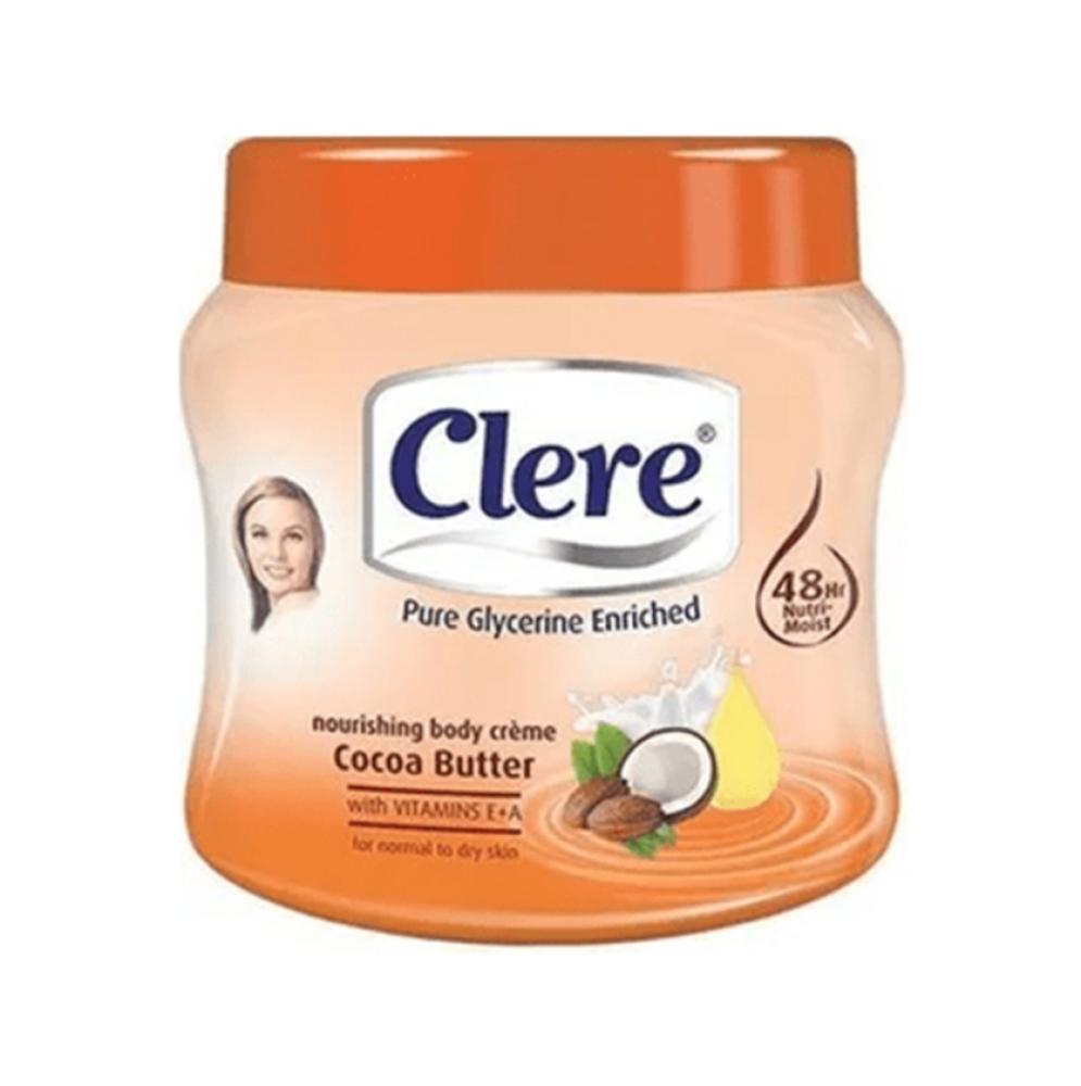 كريم رائع يجعل بشرتك ناعمة وملساء ورائعة يتميز بمكوناته المثالية للبشرة. تحتوي على الجلسرين وفيتامين هـ و أ بالإضافة إلى زبدة الكاكاو. كريم كلير يساعدك بالحفاظ على البشرة متألقة ورطبة وأكثر نضارة. امنحي بشرتك ترطيبًا تستحقه بهذا الكريم الرائع.