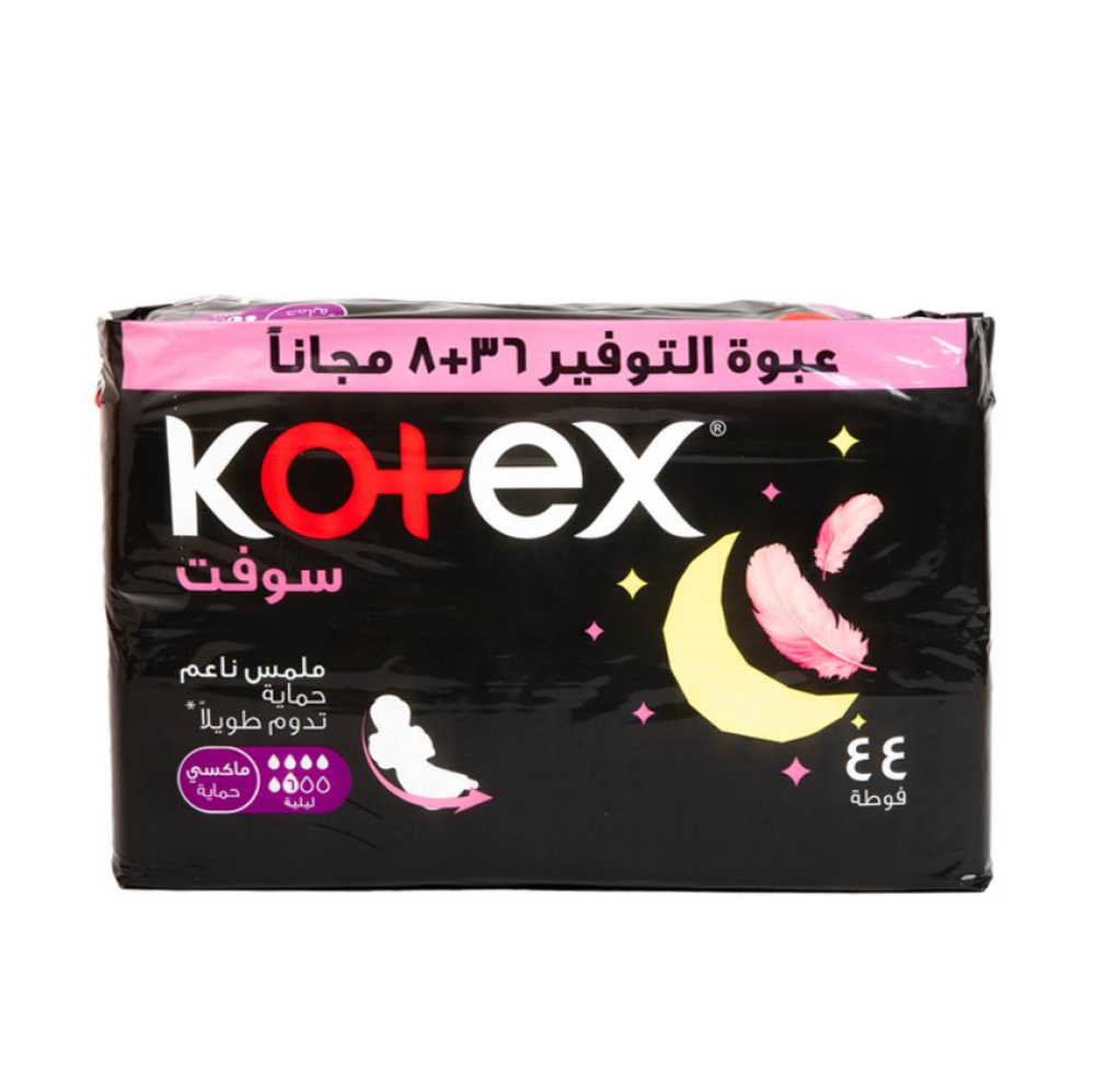 كوتيكس سوفت ماكسي حماية ليلية بالاجنحة عبوة التوفير 36+8 فوطة