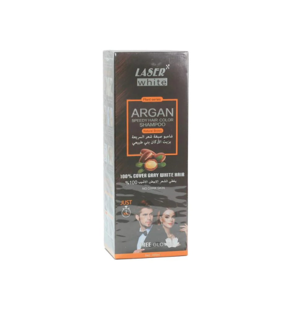 لاسير وايت شامبو صبغة لون بني طبيعي بزيت الأركان 200 مل هو منتج مصمم لتلوين الشعر بلون بني طبيعي مع الحفاظ على صحته ولمعانه. يحتوي على زيت الأركان المعروف بخصائصه المرطبة والمغذية للشعر، مما يجعل الشعر يبدو أكثر حيوية ولمعانًا بعد الصبغة. هذا الشامبو يوفر حلاً سريعًا وفعالاً لصبغ الشعر في المنزل، كما أنه يلطف فروة الرأس ويحافظ على ترطيب الشعر.