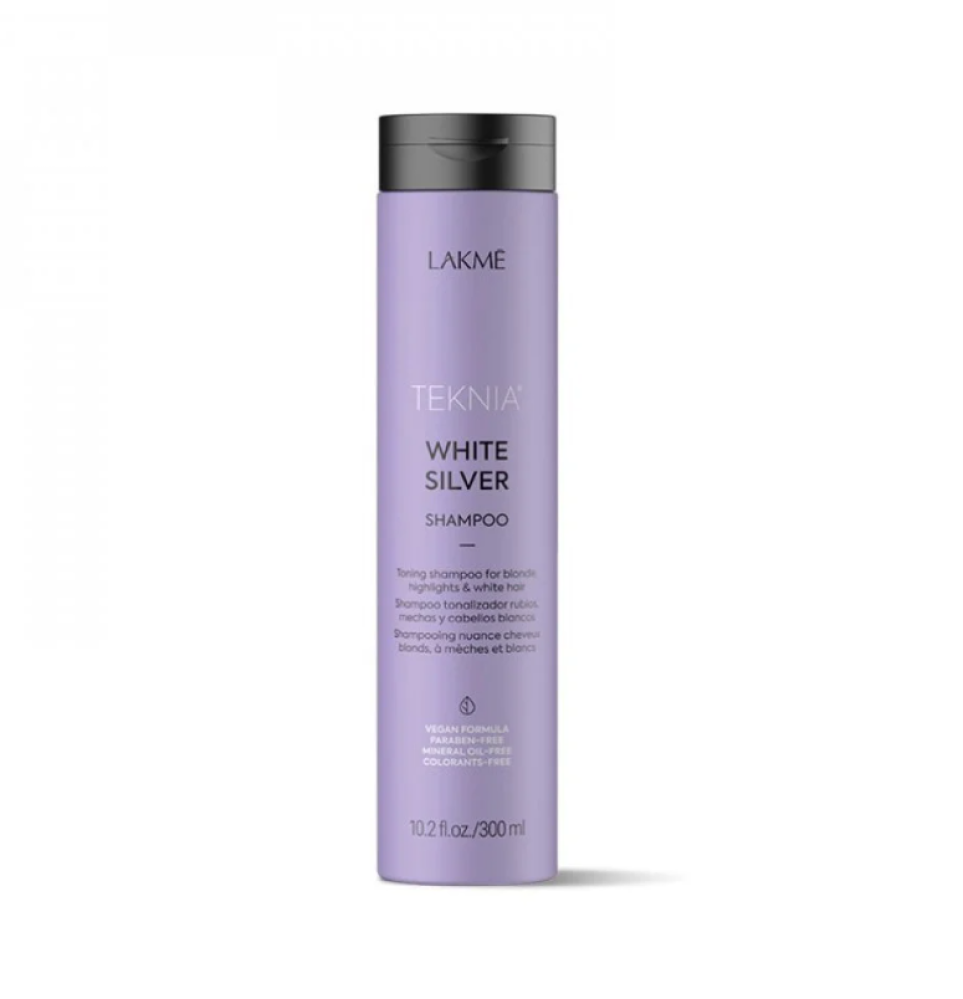 لاكمي شامبو تكنيا وايت سيلفر هو شامبو متخصص صُمم للحفاظ على لون الشعر الأشقر والرمادي والمبيض. يحتوي على مكونات تعمل على التخلص من اللون الأصفر غير المرغوب فيه، مما يمنح الشعر مظهراً لامعاً ونقياً. يحتوي شامبو لاكمي على أحماض أمينية من القمح الطبيعي تعمل على تحسين ألياف الشعر عن طريق استعادة مستويات الرطوبة المثلى.