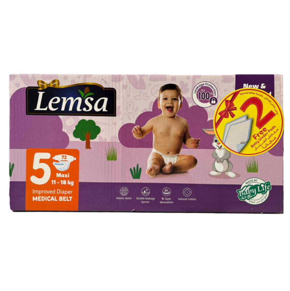 لمسة حفاضات بيبي لايف مطورة ماكس مقاس (5) *72 حفاض