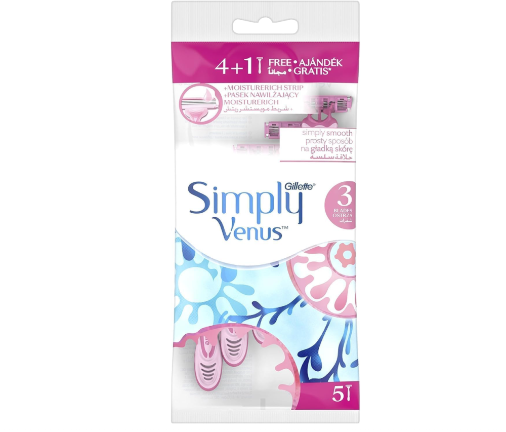ماكينة حلاقة سيمبلي فينوس ثلاث شفرات للنساء 4+1 من جيليت 5 قطع