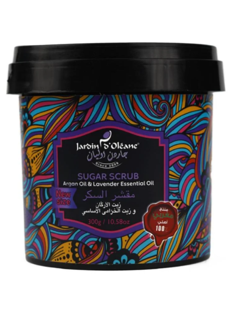 مقشر السكر بزيت الأركان وزيت الخزامى الأساسي من جاردن اوليان – 300 جرام