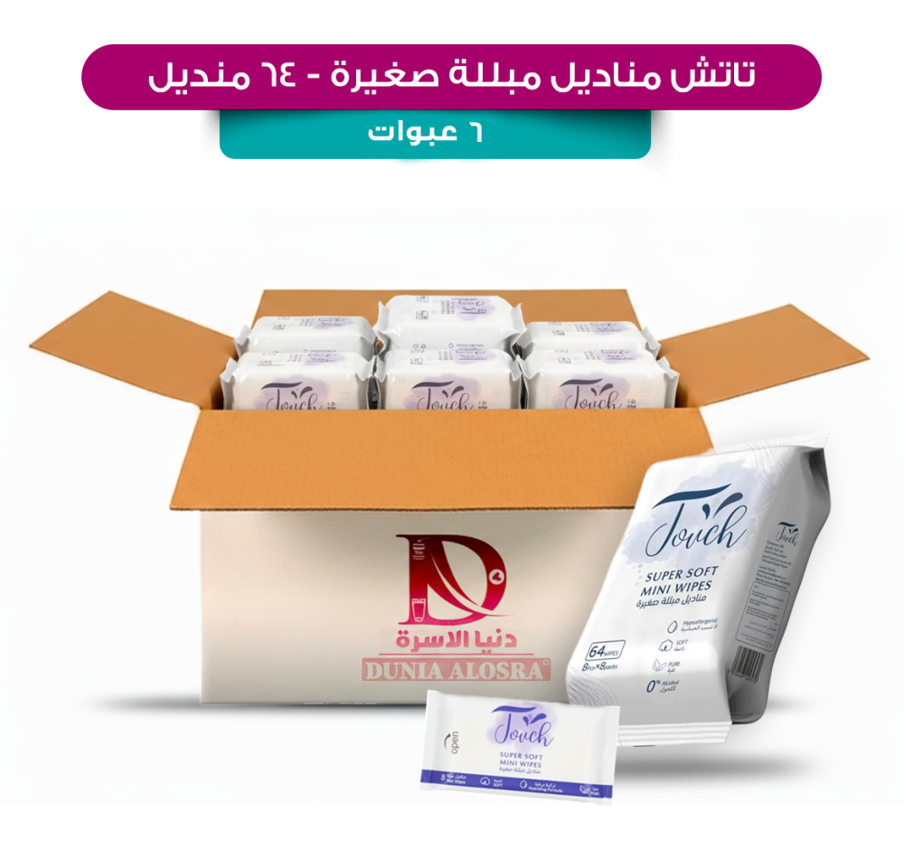مناديل مبللة تاتش قطنية صغيرة 64 منديل – 6 عبوات