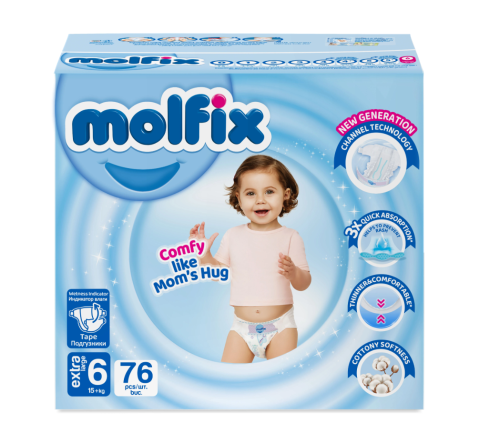 - حفاضات مولفيكس مقاس 6 مصممة خصيصًا للأطفال الذين يزيد وزنهم عن 15 كغم.