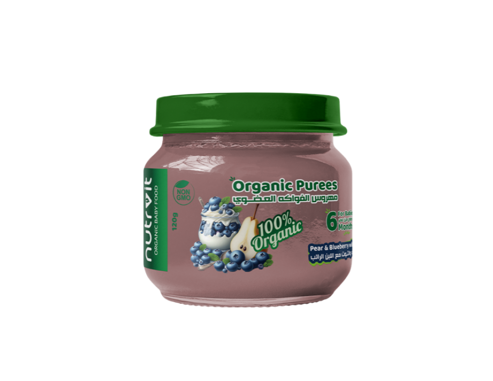 نوترفيت مهروس الفواكة العضوي (الكمثري والتوت مع اللبن الرائب) 6 شهور 120 جرام
