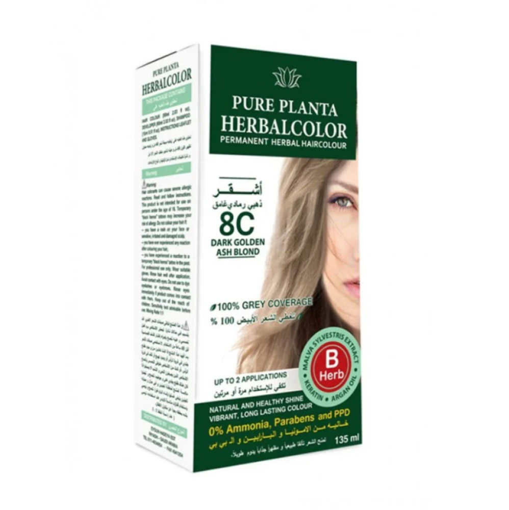 هيربل كلر صبغة نباتية دائمة 8C أشقر رمادي غامق 135 مل