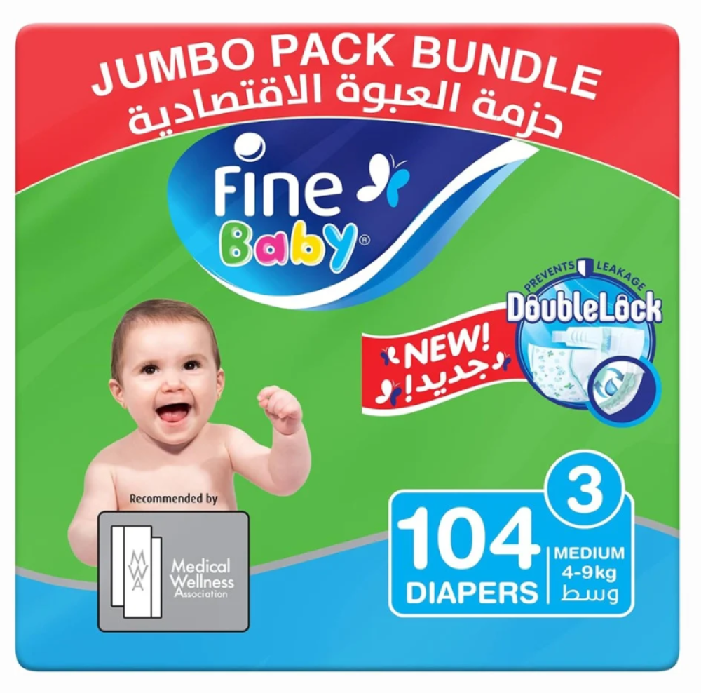 فاين بيبى حفائض اطفال مقاس (3) جامبو 104 حفاضة