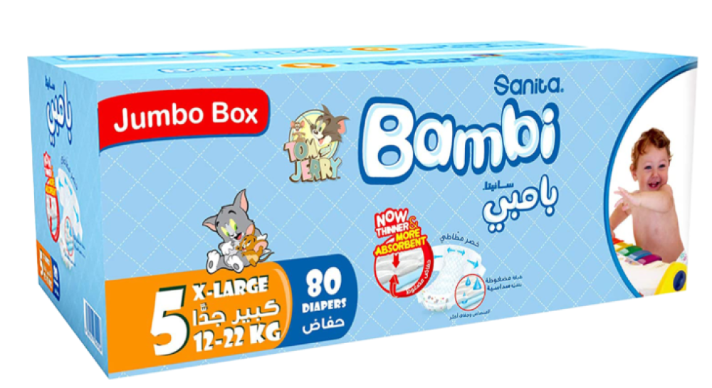 بامبي حفاضات جامبو بوكس وسط 5 – 80 حفاض