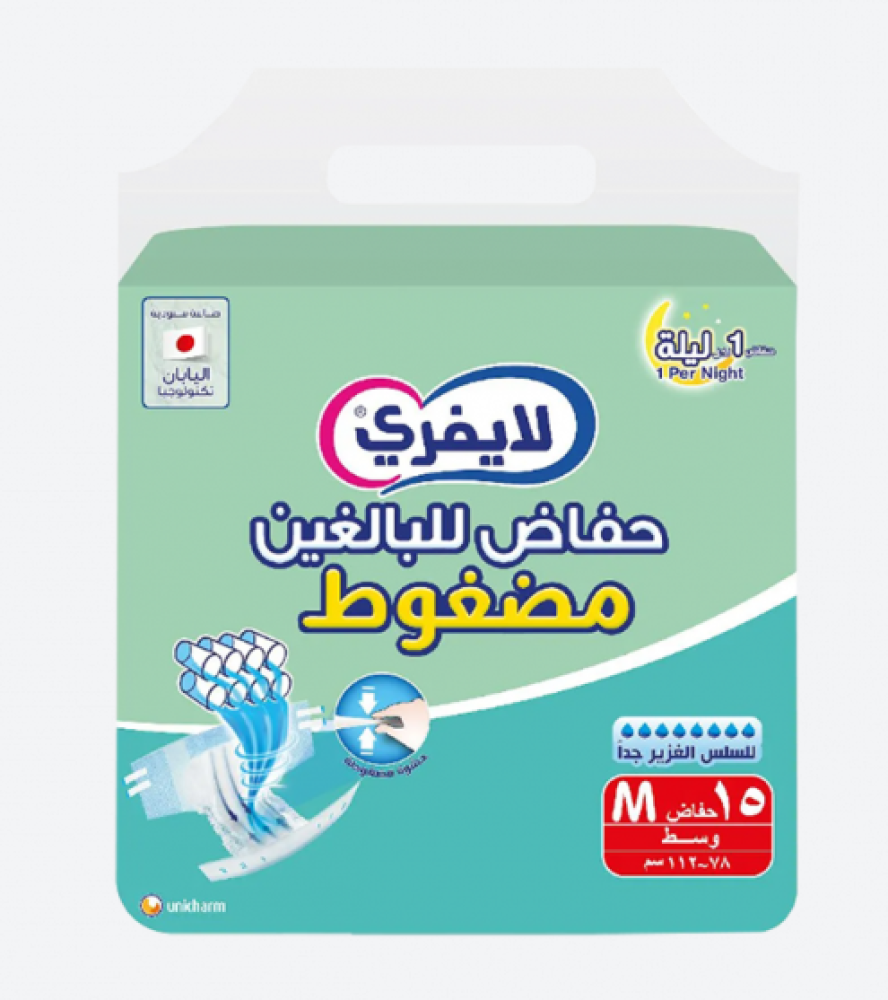 لايفري حفاضات لكبار السن – شريط لاصق – للسلس الغزير جدا مقاس وسط 15 حفاض