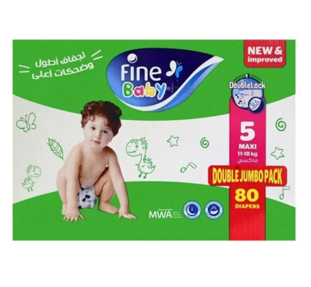 فاين بيبى حفاضات اطفال مقاس (5) جامبو 80 حفاضة