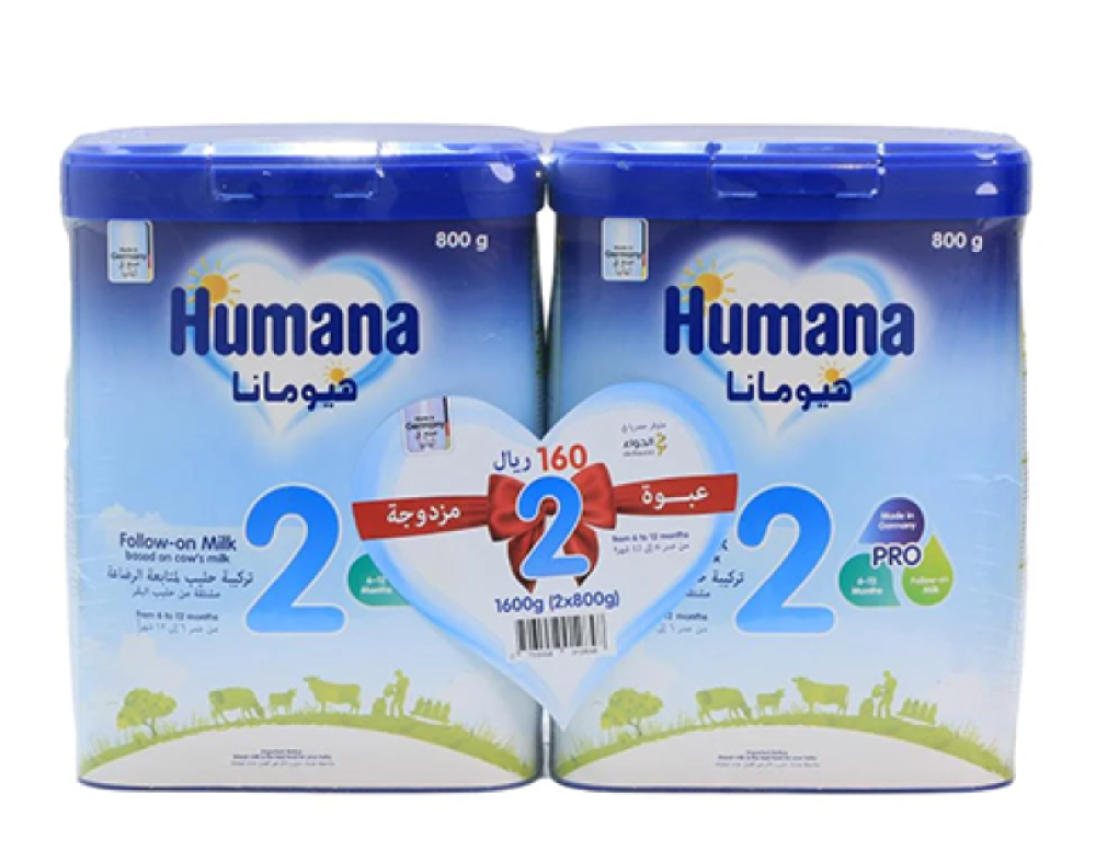 هيومانا حليب اطفال رقم (2) عرض عبوة مزدوجة 2*800 جم
