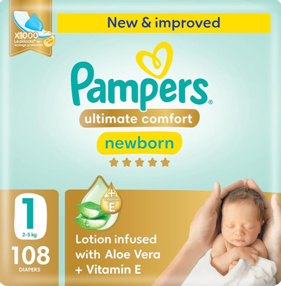 • بامبرز شدة رقم (1) مولود جديد عناية مميزة 108 حبة