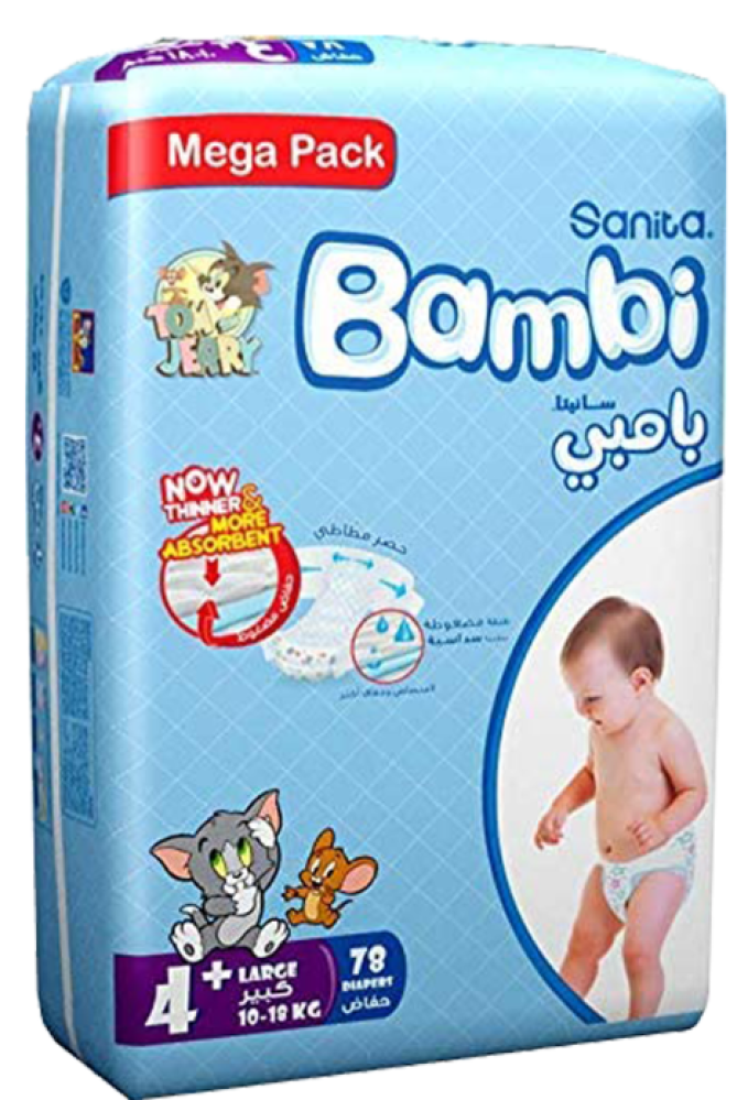 حفاضات العبوة الضخمة رقم +4 بامبي سانيتا 78 حفاض